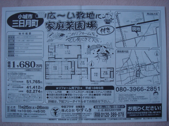 販売元:株式会社まるわ建設住所:筑紫野市大字大石8-1TEL:092-924-1943090-1081-5156